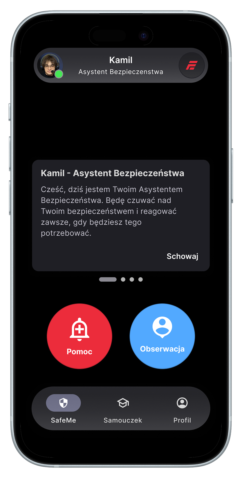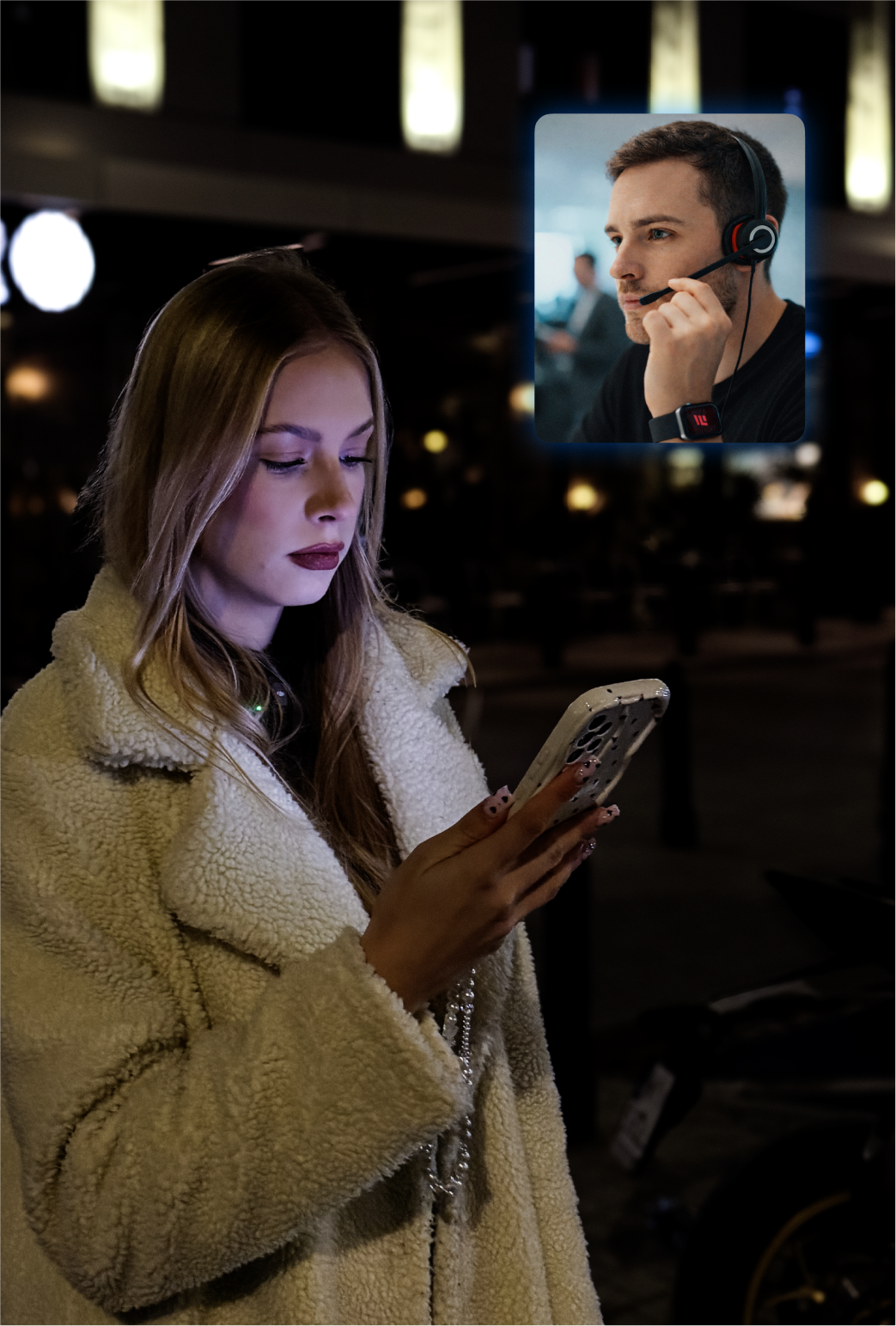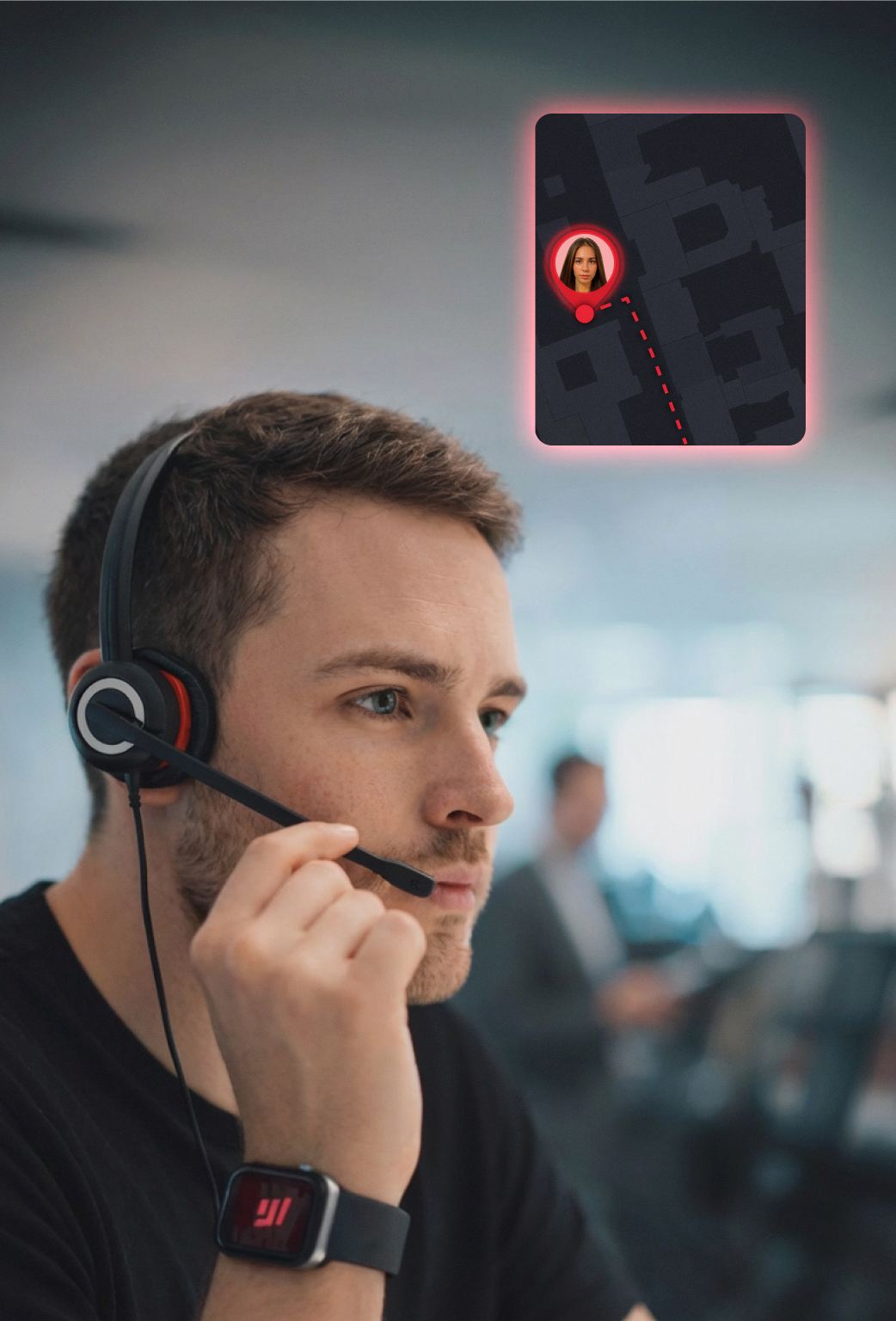 The Safety Assistant is a trained professional available 24/7 to monitor your situation and assess potential risks. They are prepared to act quickly, guide you through stressful moments, and coordinate the support you need.