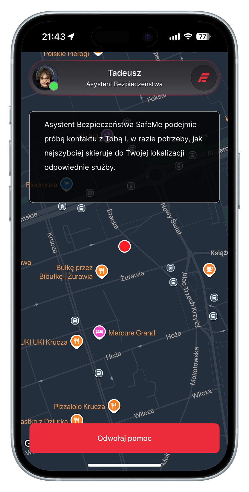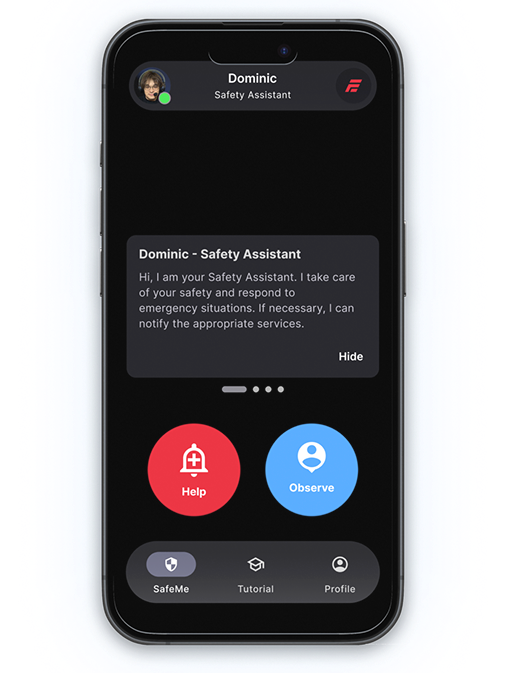 The Safety Assistant contacts you immediately to understand what’s happening and provide support. If needed, they involve emergency services and coordinate help until the situation is resolved.